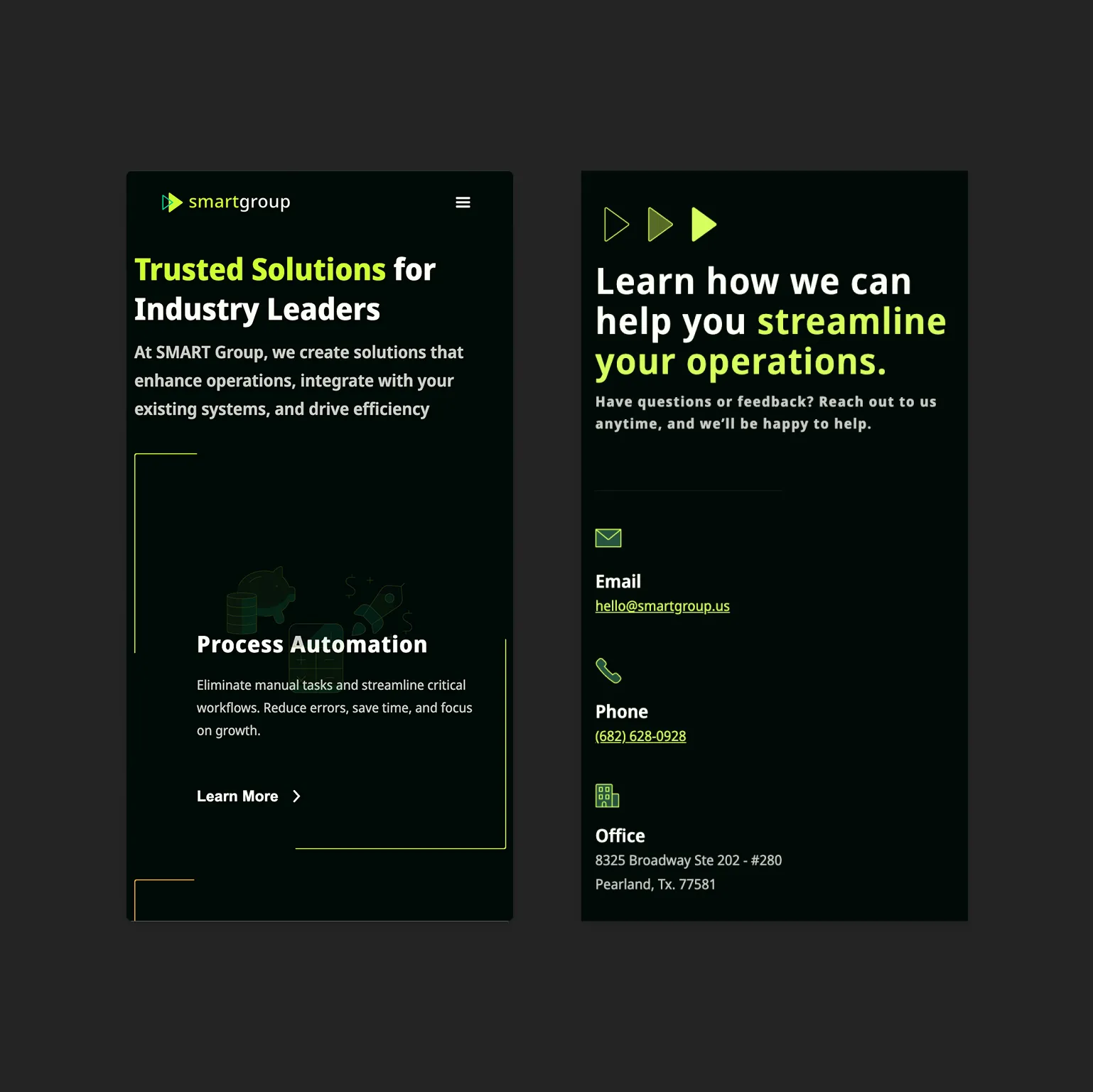 Our Webflow redesign transformed SMART Group's digital presence from a technical services catalog into a compelling business transformation platform. By shifting the narrative from what they do to the impact they create, the new website positions SMART Group as a strategic partner for forward-thinking leaders seeking to recover their most valuable resource: time.